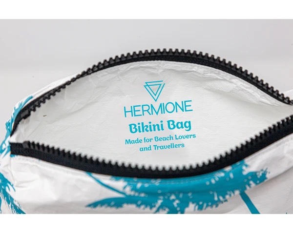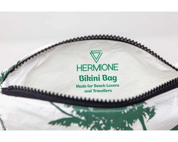 Small bag HERMIONE handmade in Greece 100% waterproof. The Perfect Bikini bag you can carry all day.Hermione Hydro-Proof ™ is a Supercool Technology that stems from the use of an inovative Supertech, Eco friendly, Recyclable & Sustainable, Waterproof material, Durable but Extremely Light.